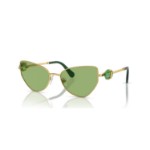 These distinctive cat-eye sunglasses have been designed for extravagant style. The gold-tone metallic frames are contrasted with deep green lenses and hinged octagon-cut green crystals on each temple. This design is inspired by our bold Lucent family and will ignite your look every time you step outside.